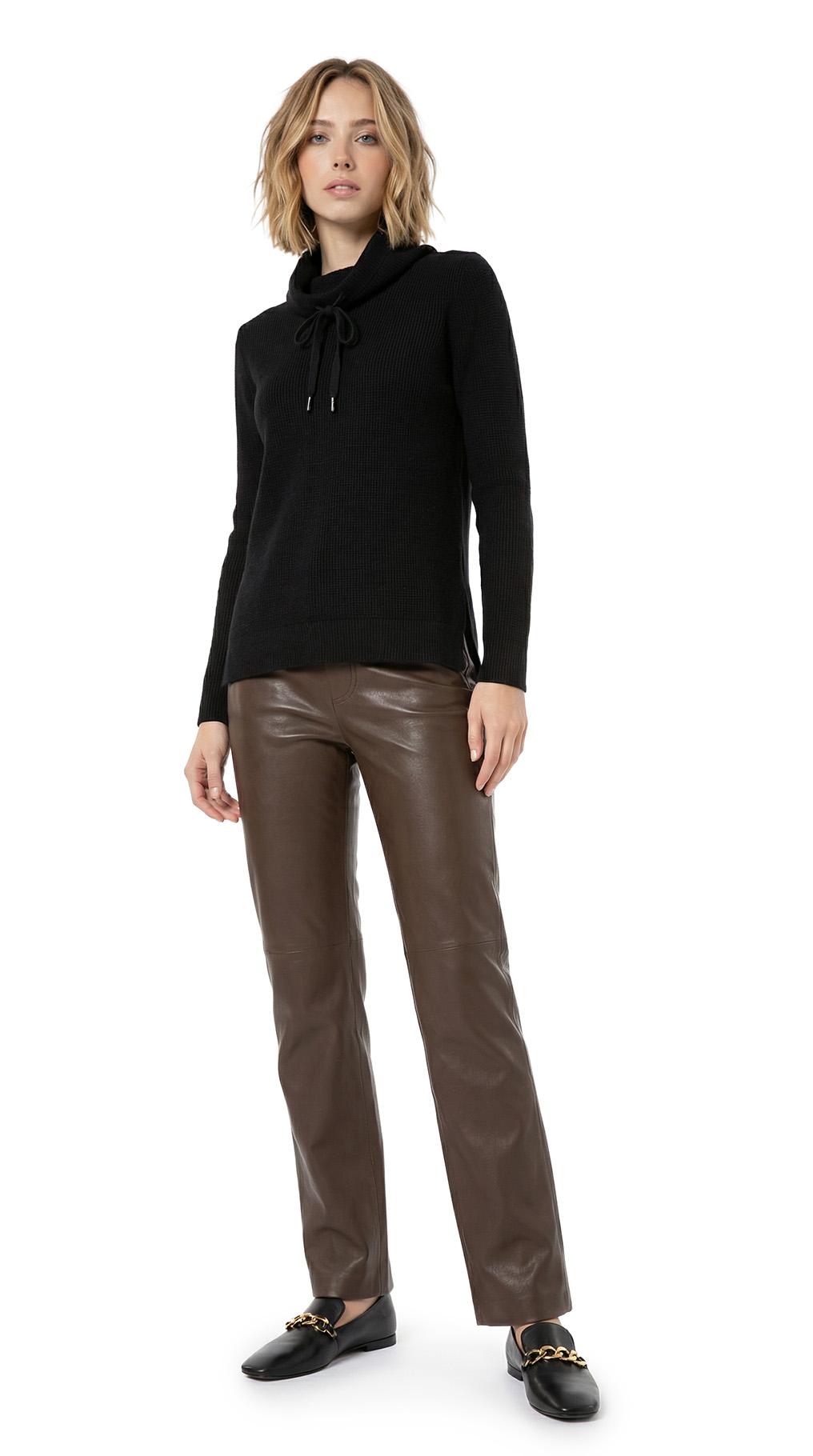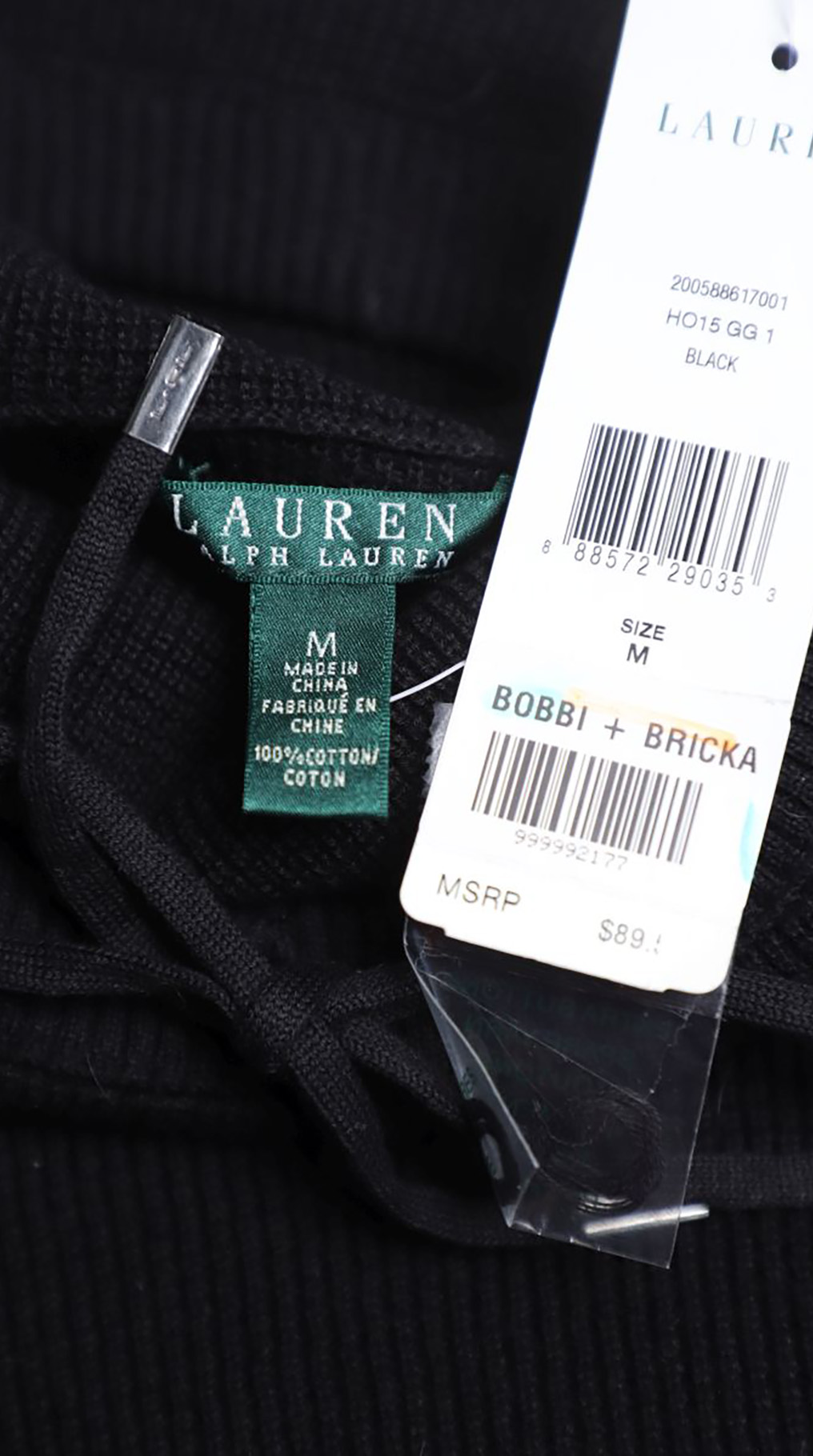 Новый трикотажный хлопковый джемпер Ralph Lauren черного цвета фактурной «вафельной» вязки. Полу-приталенный фасон с длинным рукавом и объемным вортничком стойка с подвязкой на кантик. Резинка по бедрам и манжетам рукавов. Шлички в боковых швах для комфортной посадки. В составе: 100% хлопок — ткань средней плотности, мягкая, хорошо тянется. Оригинал из США. Состояние — новое, с оригинальной биркой Ralph Lauren. Цена на бирке — 89.5$.