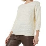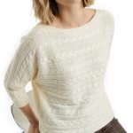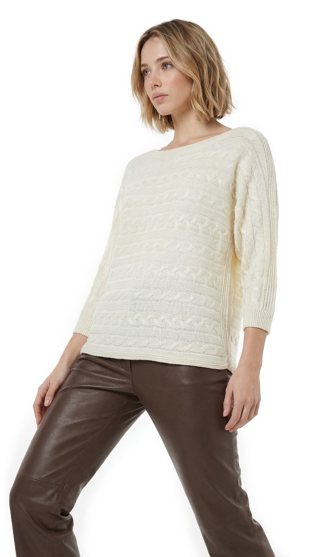 Новый трикотажный джемпер Ralph Lauren кремового цвета фактурной вязкой «косами». Свободный фасон с приспущенным рукавом реглан длиной 3/4 и скругленной горловиной. В составе: 44% вискоза, 56% хлопок — ткань средней плотности, мягкая, хорошо драпируется. Состояние — новое.