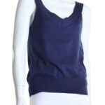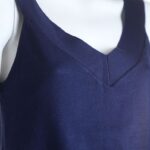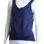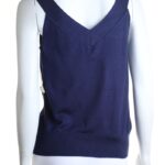 Новый трикотажный джемпер на бретелях Ralph Lauren темно-синего цвета с V-образной горловиной, подчеркивающей линию декольте. Внутренняя вставка по линии груди обеспечивает дополнительную поддержку. Широкая резинка по бедрам. В составе: 79% натуральный шелк, 18% нейлон, 3% эластан — ткань экстра качества: мягкая, с шелковистым отливом. Оригинал из США. Состояние — новое, с биркой.