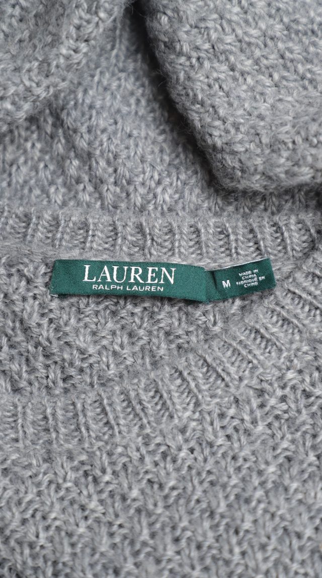 Вязаный шерстяной джемпер Ralph Lauren светло-серого цвета. Мягкий и легкий как пушинка. Свободный покрой красивой объемной вязки с длинным приспущенным рукавом и широкой резинкой по низу. В составе: 70% акрил, 25% шерсть альпака, 5% шерсть. Состояние — идеальное, как новое.