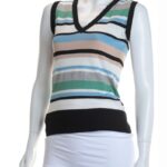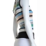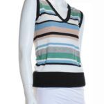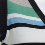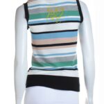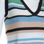 Новый джемпер «безрукавка» итальянского бренда Sarah Chole в полоску бежево-черно-зелено-голубых тонов. Аппликация логотипа бренда по спинке. V-образная горловина. Широкая резинка по бедрам. В составе 97% хлопок, 3% п.э — ткань легкая, мягкая, хорошо тянется. Состояние — новое, с фирменной биркой Sarah Chole.