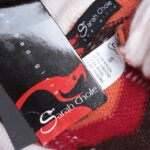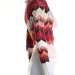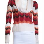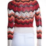 Новый яркий шерстяной джемпер итальянского бренда Sarah Chole в красно-бело-оранжевых тонах, декорированный стразами и логотипом бренда по спинке. Женственный приталенный фасон с объемным воротничком «хомут» и длинным приспущенным рукавом. В составе 15.4% шерсть, 12.9% ангора, 22.5% вискоза, 49.2% нейлон — ткань легкая, очень мягкая и теплая. Состояние — новое, с фирменной биркой Sarah Chole.