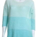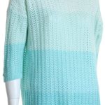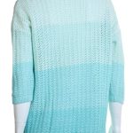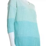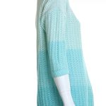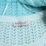 Хлопковый джемпер российского бренда Sela салатово-бирюзовых тонов красивой ажурной вязки. Свободный удлиненный фасон с приспущенным рукавом 1/2 и скругленной горловиной. Резинка по бедрам. Бирка с составом срезана — экспертная оценка: хлопок — ткань средней плотности. Состояние — отличное.