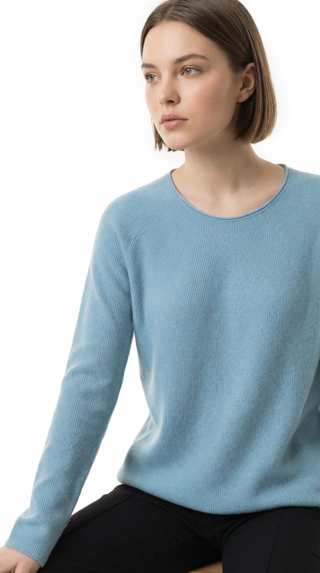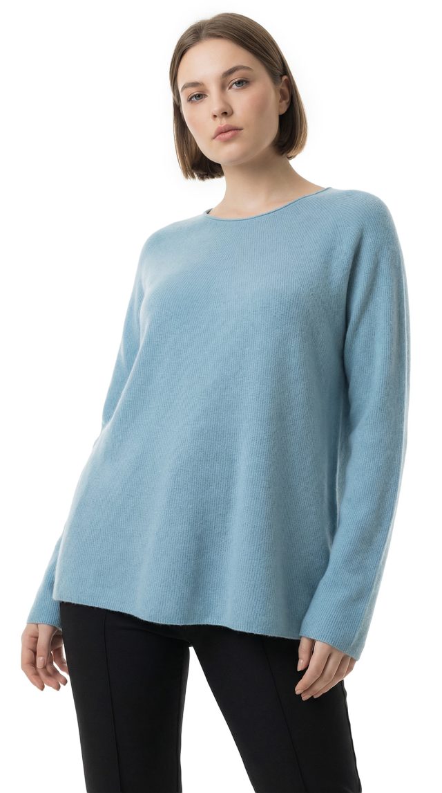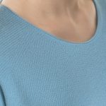 Новый джемпер итальянского премиального бренда Stefanel нежно-голубого цвета из 100% виргинской шерсти (virgin wool) — нежной, мягкой, как облачко, легкой как пушинка и в тоже время теплой. Свободный удлинённый, женственный, фасон «трапеция», свободно ниспадающий волнами от груди — визуально скрывает бедра и подчеркивает грудь. Длинный приспущенный рукав. Скругленная горловина. Состояние — новое, с оригинальной биркой магазина Stefanel.