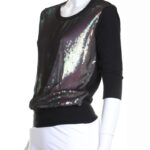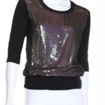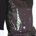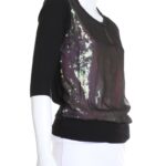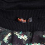 Трикотажный джемпер Tom Farr черного цвета с пайетками под гипюровой сеточкой. Рукав длиной 1/2. Широкая резинка по бедрам. Без застежки. В составе: 100% п.э, без подклада — ткань легкая, мягкая, приятная на ошупь. Состояние — отличное.