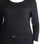 Оригинал из Англии. Трикотажный джемпер британского бренда Wallis черного цвета. Прямой удлиненный фасон со скругленной горловиной и широкой резинкой на бедрах, декорированной кантиком на серебряной пряжке. В составе: 82% вискоза, 16% нейлон, 2% эластан: ткань средней плотности, мягкая, комфортная к телу, эластичная. Состояние — отличное.