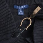 Вязаный кардиган Chaps by Ralph Lauren темно-синего цвета с объемным воротничком «шалька» и застежкой на позолоченную пряжку. Короткий приспущенный рукав, широкая резинка по бедрам. В составе: 56% лен, 44% хлопок: ткань плотная, объемная. Состояние — хорошее.