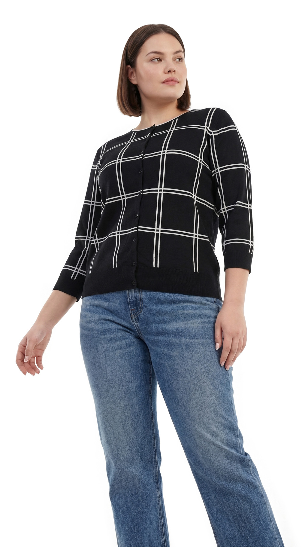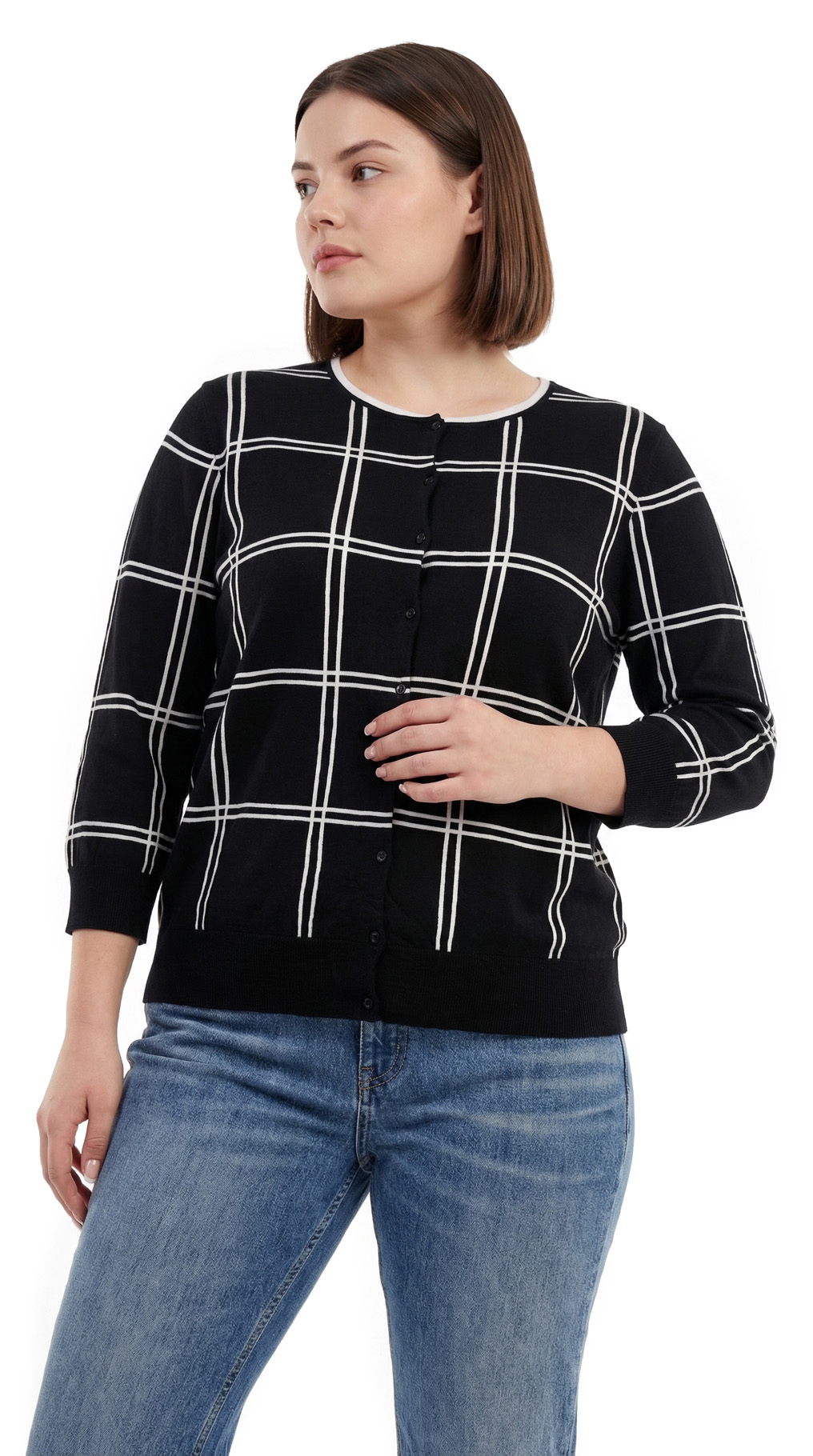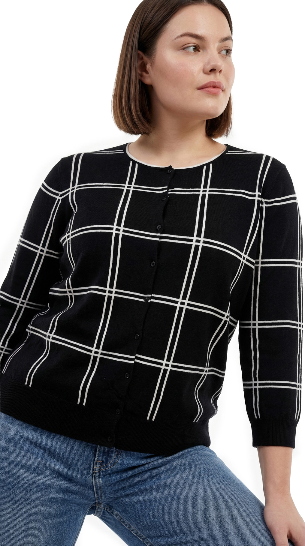 Трикотажный кардиган Ralph Lauren (коллекция Chaps) в черно-белую «шахматку» с рукавом 3/4 и застежкой на пуговки. Широкая резинка по бедрам. Скругленная горловина. В составе: 100% хлопок — ткань легкая, очень мягкая, приятная к телу. Состояние — идеальное, как новое.