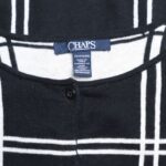 Трикотажный кардиган Ralph Lauren (коллекция Chaps) в черно-белую «шахматку» с рукавом 3/4 и застежкой на пуговки. Широкая резинка по бедрам. Скругленная горловина. В составе: 100% хлопок: ткань очень мягкая, приятная к телу. Состояние — идеальное, как новое.