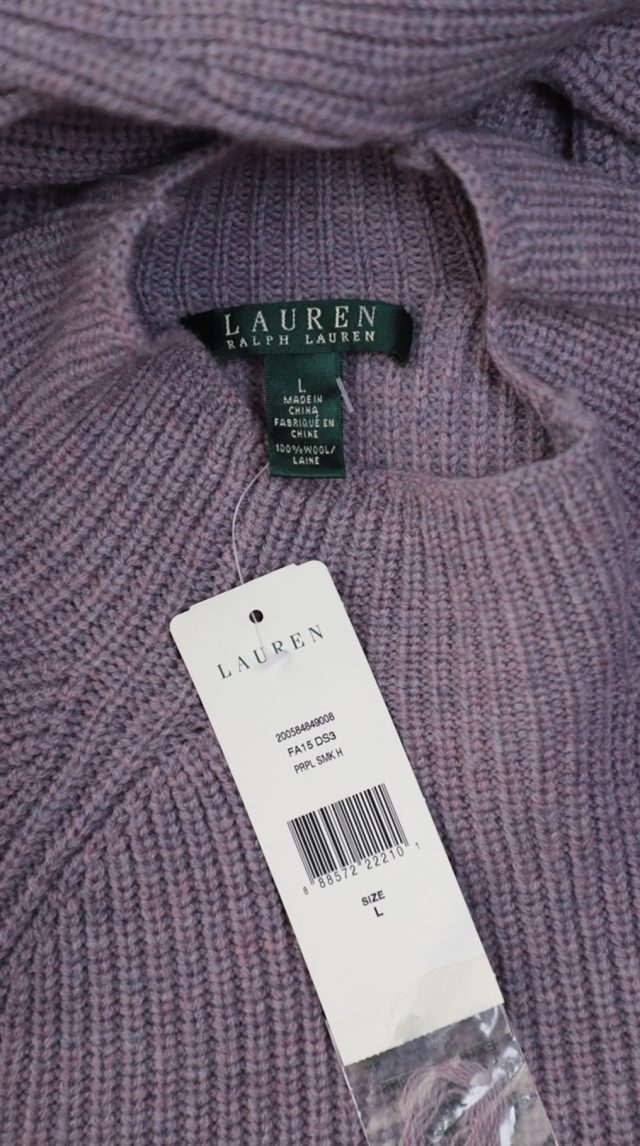 Новый шерстяной свитер Ralph Lauren редкого цвета сирени. Полу-приталенный фасон объемной вязкой резинкой с длинным приспущенным рукавом реглан. В составе — 100% шерсть экстра качества: мягкая, приятная к телу. Фирменное качество элитного бренда. Состояние — новое, с оригинальной биркой Ralph Lauren.
