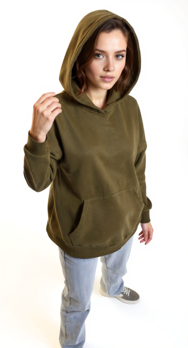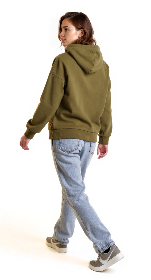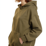 Новая утепленная толстовка с капюшоном итальянского бренда Stefanel темно-зеленого, болотного, цвета. Свободный удлиненный фасон oversize без застежки с широкой резинкой, длинным приспущенным рукавом и большим накладным кармашком «кенгуру». В составе — 78% хлопок, 22% пэ: ткань экстра качества: плотная, очень мягкая, с начесом на внутренней стороне. Состояние — новое, с оригинальной биркой магазина Stefanel.