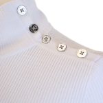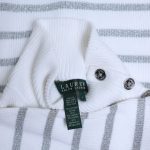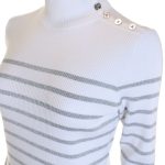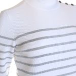 Трикотажная водолазка американского премиального бренда Ralph Lauren белого цвета с серебристыми полосами люрекса. Женственный фасон с длинным рукавом и горловиной стойка, декорированной фирменными пуговками с гравировкой бренда. Вязка резинкой — хорошо тянется и садится по фигурке. В составе: 72% хлопок, 18% п.э, 10% люрекс: ткань плотная, эластичная. Состояние — отличное.