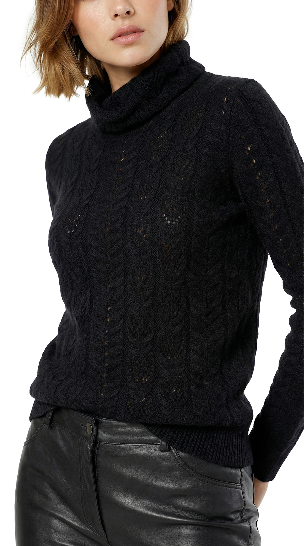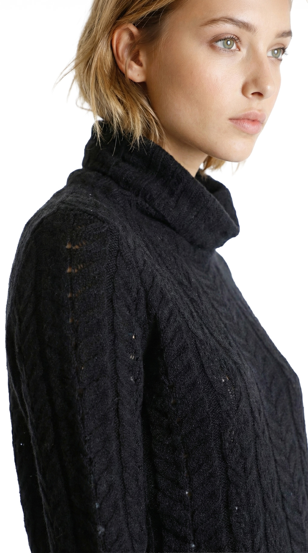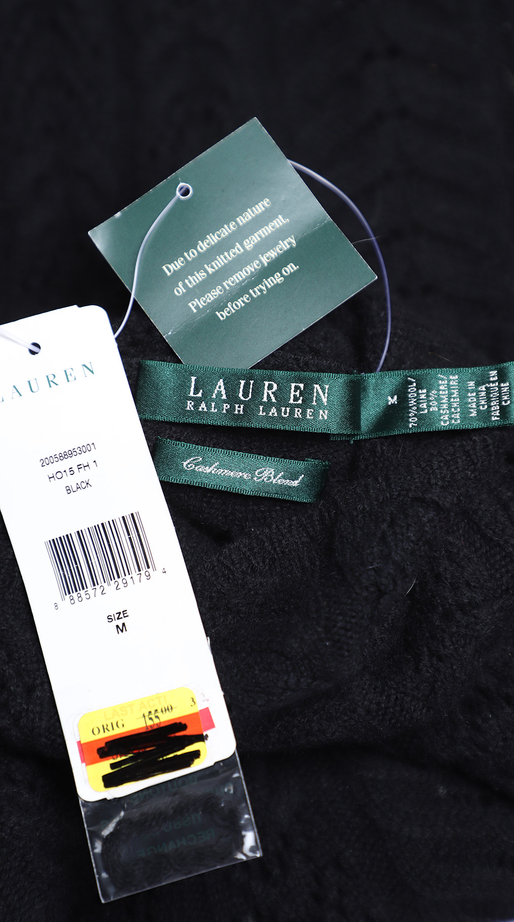 Новая шерстяная водолазка Ralph Lauren черного цвета фактурной вязкой косами. Прямой фасон с объемным воротничком стойка и длинным рукавом. Широкая резинка по бедрам. В составе: 70% шерсть, 30% кашемир — ткань экстра качества: легкая, как пушинка, мягкая, как облачко, и очень теплая. Превосходное качество от элитного бренда. Оригинал из США. В единственном экземпляре в России. Состояние — новое, с фирменной биркой Ralph Lauren. Цена на бирке — 155$.