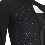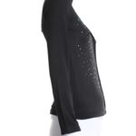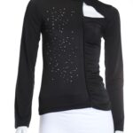 Новая трикотажная водолазка итальянского бренда Sarah Chole черного цвета со стразами. Драпировка и игривый вырез по переду. Длинный рукав. Фирменная аппликация логотипа бренда на воротничке. В составе 96% п.э, 4% спандекс — ткань легкая, шелковистая, хорошо тянется. Состояние — новое, с фирменной биркой Sarah Chole.