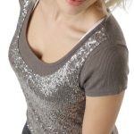 Новый яркий трикотажный джемпер итальянского бренда Rinascimento серо-коричневого цвета, декорированный пайетками с коротким рукавом. В составе: 65% вискоза, 30% шерсть, 5% лайкра — ткань легкая, мягкая, эластичная. Состояние — новое, с фирменной биркой Rinascimento.