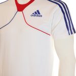 Новая хлопковая футболка Adidas белого цвета с сине-красным акцентом, фирменным лого на груди и принтом France по спинке. Прямой фасон с коротким приспущенным. В составе: 100% хлопок — ткань легкая, мягкая. Оригинал из США. Состояние — новое, с фирменной биркой Adidas.