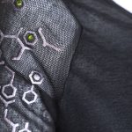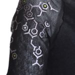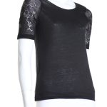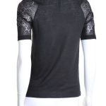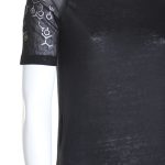 Новая льняная футболка легендарного французского бренда Cop Copine черного цвета. Приталенный фасон с коротким рукавом, декорированным сеточкой с серебристой геометрической аппликацией и зелеными «камушками». В составе: 100% лен — ткань средней плотности, не прозрачная, мягкая. Состояние — новое, с фирменной биркой Cop Copine.
