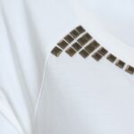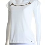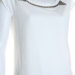 Новая хлопковая футболка Cop Copine молочно-белого цвета с декорацией бронзовыми стразами по линии горловины. Прямой фасон с коротким приспущенным рукавом. Фирменная плашка «Cop» в левом нижнем углу. В составе: 70% лиоцелл, 30% хлопок — ткань экстра качества: средней плотности, мягкая, эластичная. Пошив — Португалия. Состояние — новое, с фирменной биркой Cop Copine.