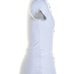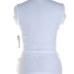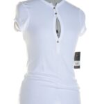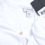Новая трикотажная футболка американского бренда Guess белого цвета с вырезом «капелька» на груди, застежкой на золотые пуговки и коротким рукавом. В составе: 97% вискоза, 3% спандекс: ткань легкая, очень мягкая, хорошо тянется. Состояние — новое, с оригинальной биркой Guess. Цена на бирке — 34$.