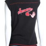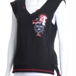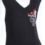Новая хлопковая футболка итальянского бренда Sarah Chole черного цвета. Полу-приталенный фасон с кармашком на груди и нашивкой по спинке, декорированными стразами и заклепками. Короткий рукав. V-образная горловина. Чуть удлиненная спинка. Шлички в боковых швах для комфортной посадки. В составе: 100% хлопок — ткань легкая, мягкая, эластичная, по фактуре в мелкий рубчик. Состояние — новое, с фирменной биркой Sarah Chole.