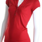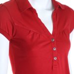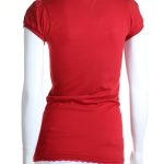 Новая футболка Tommy Hilfiger темно-красного цвета. Удлиненный приталенный фасон с коротким рукавом на резинке и глубоким V-вырезом горловины. Классический отложной воротничок. Фирменная вышивка TH и флаг на рукаве. Подол, декорированный кружевом. Застежка на бронзовые брендированные пуговки по горловине. В составе: 60% хлопок, 40% модал — ткань мягкая, бархатистая, хорошо тянется. Состояние — новое, с фирменной биркой Tommy Hilfiger.