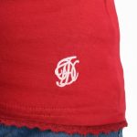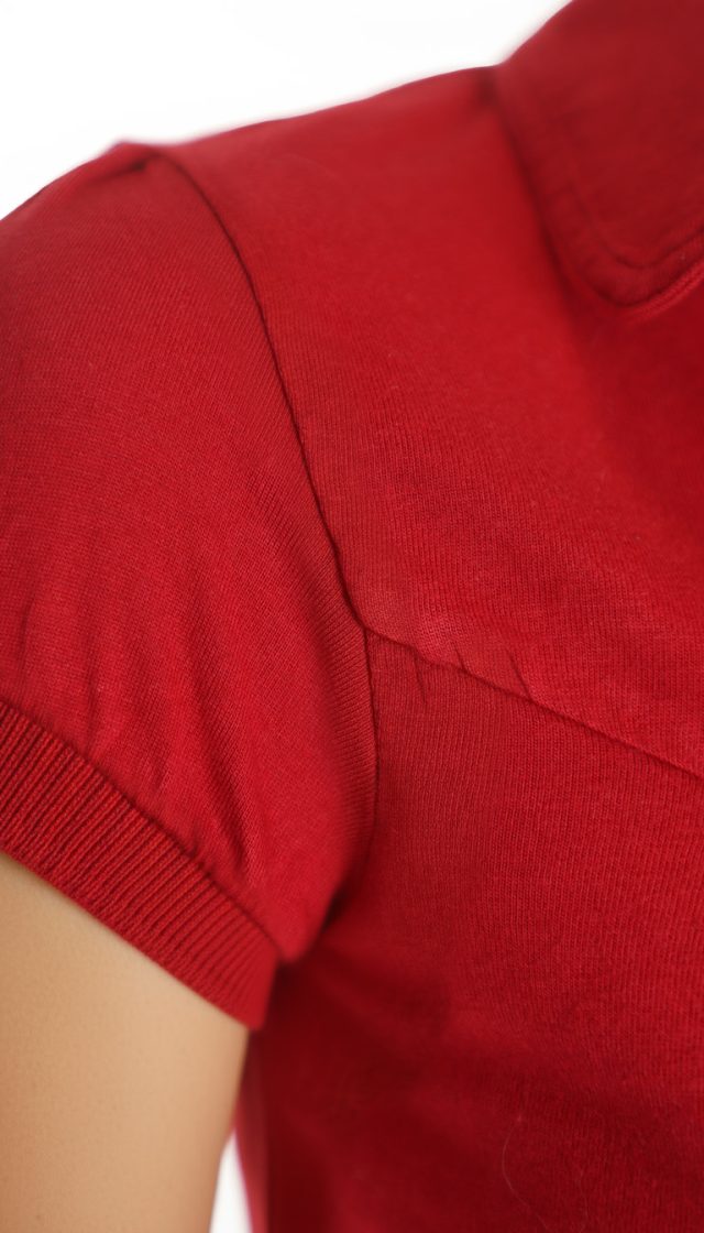 Новая футболка Tommy Hilfiger темно-красного цвета. Удлиненный приталенный фасон с коротким рукавом на резинке и глубоким V-вырезом горловины. Классический отложной воротничок. Фирменная вышивка TH и флаг на рукаве. Подол, декорированный кружевом. Застежка на бронзовые брендированные пуговки по горловине. В составе: 60% хлопок, 40% модал — ткань мягкая, бархатистая, хорошо тянется. Состояние — новое, с фирменной биркой Tommy Hilfiger.