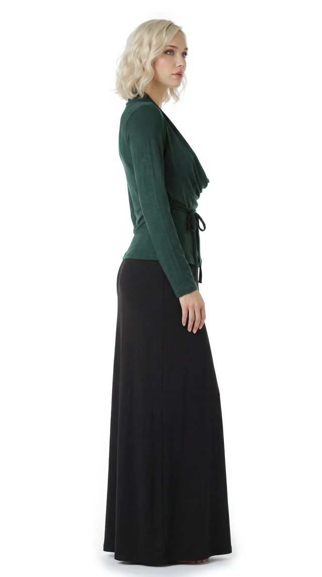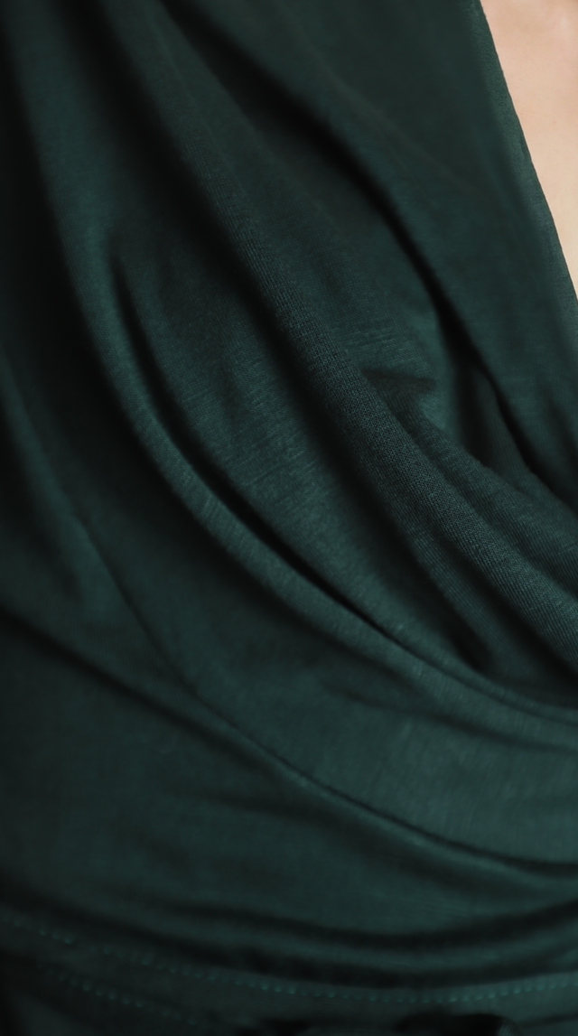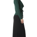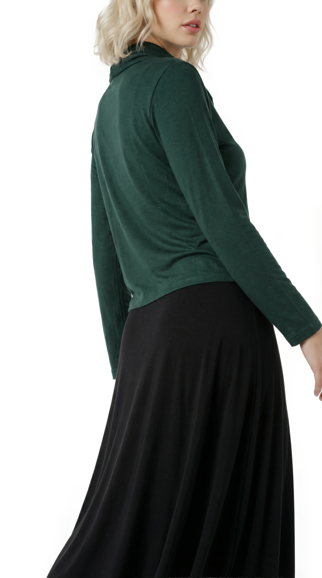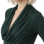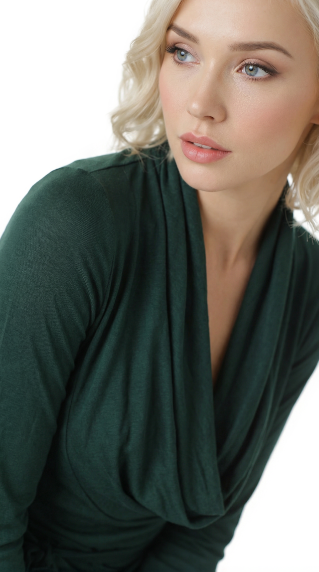 Новый трикотажный лонгслив итальянского бренда Sarah Chole зелено-нефритового цвета с длинным рукавом, глубоким воротником хомут, подчеркивающим линию декольте, и подвязкой на кантик по талии. В составе 97% вискоза, 5% спандекс — ткань очень мягкая, шелковистая, хорошо тянется. Состояние — новое, с фирменной биркой Sarah Chole.