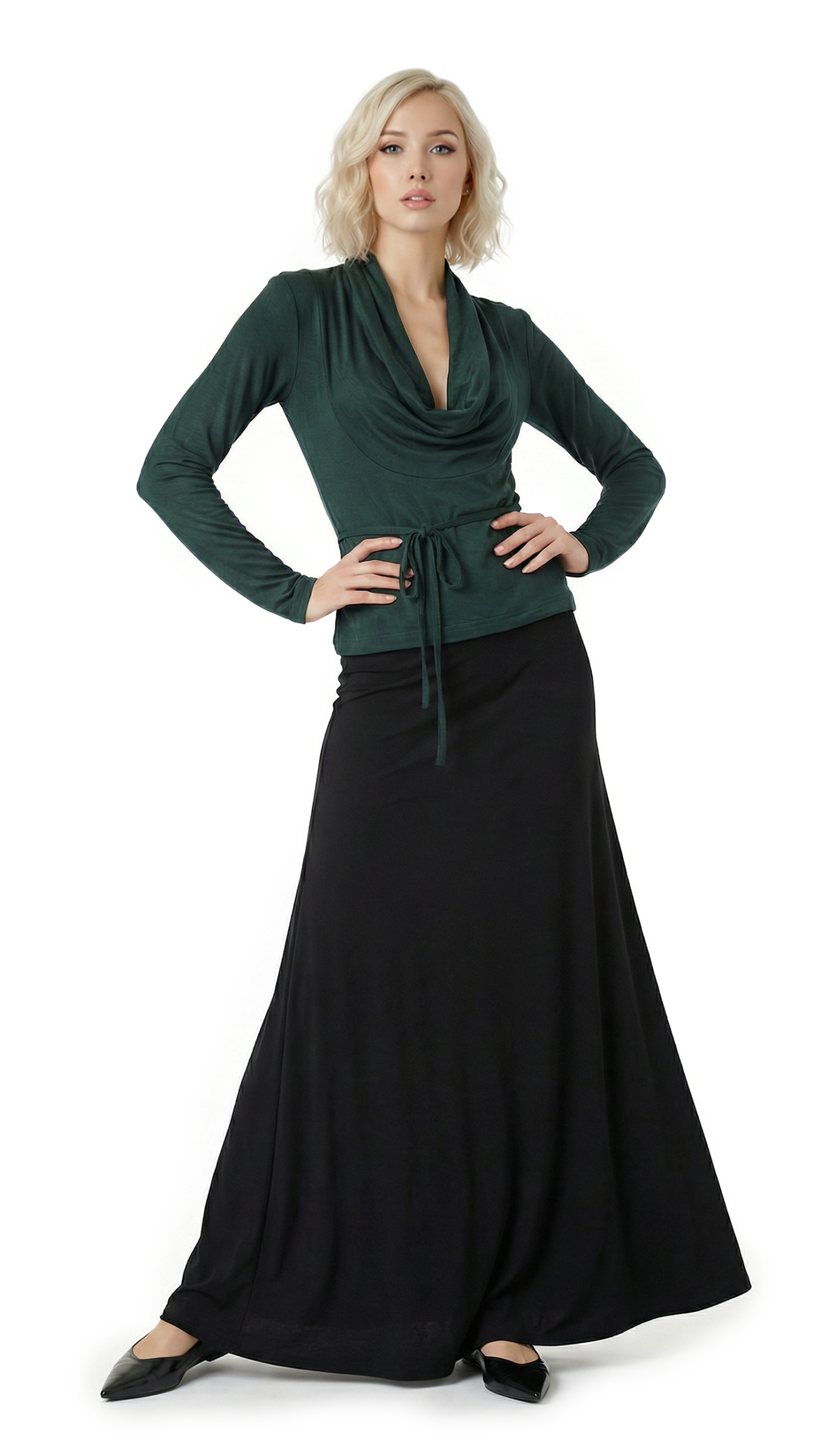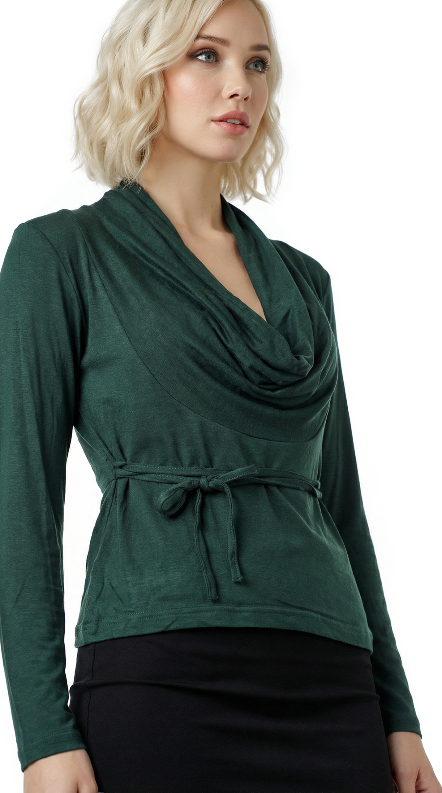 Новый трикотажный лонгслив итальянского бренда Sarah Chole зелено-нефритового цвета с длинным рукавом, глубоким воротником хомут, подчеркивающим линию декольте, и подвязкой на кантик по талии. В составе 97% вискоза, 5% спандекс — ткань очень мягкая, шелковистая, хорошо тянется. Состояние — новое, с фирменной биркой Sarah Chole.