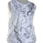 Новая трикотажная майка американского бренда Guess белого цвета с тропическим рисунком. В составе: 60% хлопок, 40% вискоза: ткань легкая, очень мягкая, хорошо тянется. Состояние — новое, с оригинальной биркой Guess. Цена на бирке — 39$.
