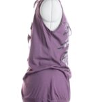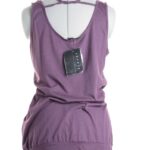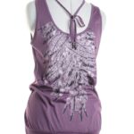 Новая трикотажная майка на бретелях французского бренда Sisley темно-фиолетового цвета с ярким рисунком «перья». Удлиненный фасон с широкой баской по бедрам и игривой подвязкой на кантик. В составе: 50% хлопок, 50% модал: ткань легкая, хорошо тянется. Состояние — новое, с фирменной биркой Sisley.