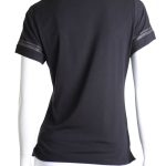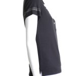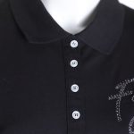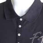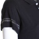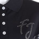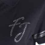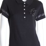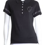 Новая рубашка-поло итальянского бренда Fracomina черного цвета. Приталенный фасон с коротким рукавом, застежкой на перламутровые пуговки по груди и классическим отложным воротничком. Рукава и фирменная надпись FJ отделаны стразами. Вырезы в боковых швах для комфортной посадки. В составе: 94% хлопок, 6% спандекс: ткань легкая, очень мягкая, эластичная. Состояние — новое, с фирменной биркой Fracomina.