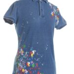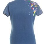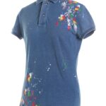 Яркая, стильная рубашка-поло Polo Ralph Lauren темно-голубого цвета с коротким рукавом, фирменной вышивкой на груди и принтом «пятна краски». Застежка спереди на пуговки. Классический воротничок стойка. В составе 100% хлопок. Состояние — отличное, без видимых следов носки.