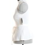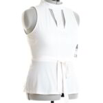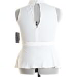 Новый секси-топ Guess молочного цвета. Женственный приталенный фасон с кокеткой по талии и подвязкой на пояс. Застежка по горловине на пуговку. Спинка и перед с резными вставками. Безрукавка. Ткань мягкая, комфортная, с хорошим стретчем. В составе: 94% п.э, 6% элтан. Длина по начало ягодиц. Состояние — новое, с фирменной биркой Guess. Цена на бирке 49$.