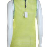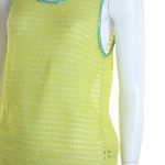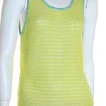 Новый вязаный топ легендарного французского бренда Cop Copine яркого салатового цвета с контрастной горловиной и проймой рукава, декорированной металлической цепочкой. Прямой фасон «безрукавка» без застежки. Фирменная плашка «Cop». В составе: 40% рами, 32% хлопок, 28% полиамид — ткань крупной вязкой, полупрозрачная. Состояние — новое, с фирменной биркой Cop Copine.