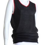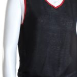Новый трикотажный джемпер итальянского премиального бренда Mariella Burani (коллекция Jeans) черного цвета с бело-красной окантовкой по горловине и пройме рукавов. Фасон «безрукавка» с V-образной горловиной и широкой резинкой по бедрам. В составе: 100% хлопок — ткань премиум качества: легкая, мягкая, эластичная, по фактуре в мелкую полу-прозрачную сеточку. Состояние — новое, с оригинальной биркой Burani.
