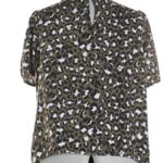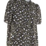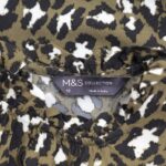 Яркий топ Marks & Spencer в крупную бело-черную точку на зелено-болотном фоне. Свободный прямой фасон с коротким рукавом «фонарик» и присборенной линией горловины. Вырез «капелька» по спинке. В составе 100% натуральная вискоза — легкая, мягкая и комфортная к телу. Состояние — отличное, как новое.