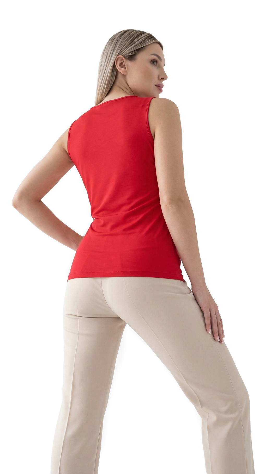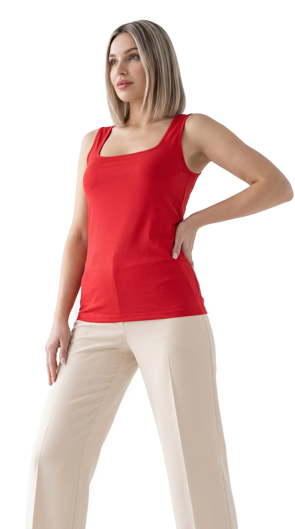 Оригинал. Новый трикотажный топ концерна Max Mara (линия EMME Marella) яркого ало-красного цвета. Лаконичный, приталенный крой с глубоким квадратным вырезом, выгодно подчеркивающим зону декольте и широкими, нерегулируемыми бретелями. Без застежки. В составе: 100% вискоза — ткань экстра качества: мягкая, шелковистая, эластичная, приятная к телу. Пошив — Турция. Состояние — новое, из аутлета концерна Max Mara (ярлык бренда надрезан — это политика аутлета).
