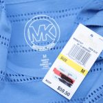Новая футболка Michael Kors небесно-голубого цвета с эффектом перфорации. Свободный полу-приталенный покрой с коротким приспущенным рукавом и скругленным вырезом горловины. В составе: 100% хлопок — ткань легкая, мягкая, приятная к телу. Оригинал из США. Состояние — новое, с фирменной биркой Michael Kors. Цена на бирке — 59.5$.
