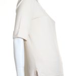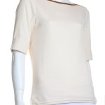 Стильный топ американского премиального бренда Ralph Lauren цвета топленого молока. Прямой покрой с рукавом 1/2 и горловиной «лодочка», декорированной кантиком под замшу. Фирменная вышивка шелком RLL. Вырезы в боковых швах для комфортной посадки. Оригинал из США. В составе: 93% хлопок, 7% эластан — ткань экстра качества: мягкая, бархатистая, комфортная к телу. Состояние — отличное.