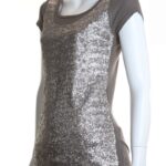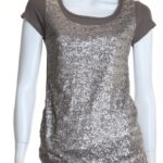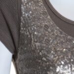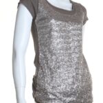 Новый яркий трикотажный джемпер итальянского бренда Rinascimento серо-коричневого цвета, декорированный пайетками. Короткий рукав. Скругленная линия горловины. В составе: 65% вискоза, 30% шерсть, 5% лайкра — ткань легкая, мягкая, эластичная. Состояние — новое, с фирменной биркой Rinascimento.