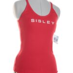 Новый трикотажный топ на бретелях французского бренда Sisley яркого красного цвета с объемной серебристой аппликацией логотипа. Укороченный, облегающий фасон. В составе: 100% хлопок: ткань плотная, хорошо тянется. Состояние — новое, с фирменной биркой Sisley.