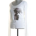 Удлиненный трикотажный топ Guess свободного покроя с яркой вышивкой пайетками и аппликацией Guess Los Angeles, привлекающей внимание. Удлиненный рукав. Скругленная широкая горловина. Состав: пима хлопок (бирка состава срезана — экспертная оценка). Состояние — идеальное, как новое.