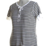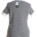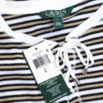 Новый трикотажный хлопковый топ Ralph Lauren в продольную полоску бело-черно-болотного цвета. Фактура ткани «резинкой». Скругленный вырез горловины с декоративной подвязкой на кантик. Короткий рукав. В составе 100% хлопок — мягкий, комфортный, с хорошим стретчем — экстра качество известного бренда. Состояние — новое, с оригинальной биркой магазина Ralph Lauren.