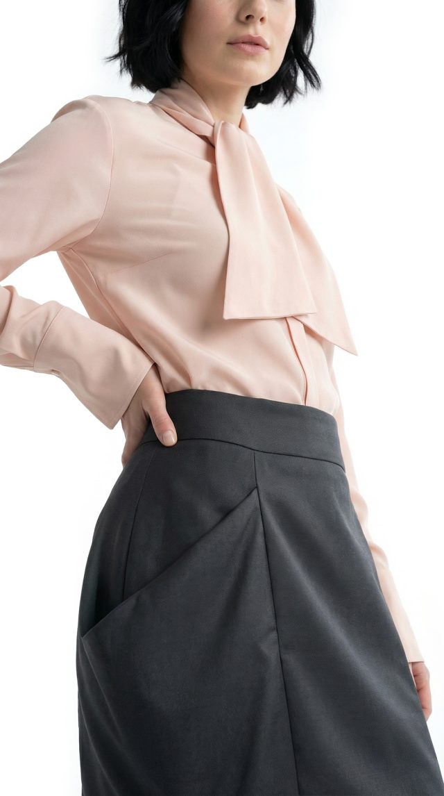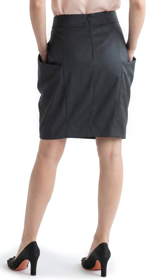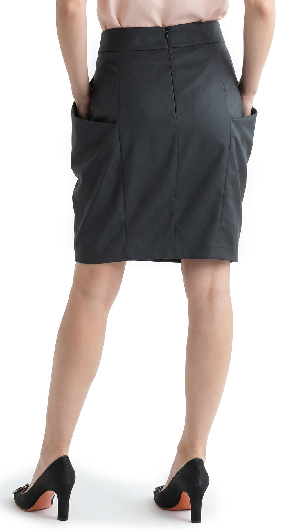 Новая шерстяная юбка премиального французского бренда BGN черного цвета. Оригинальный дизайн с большими накладными кармашками по бокам придает фасону утоненную женственность и неповторимый стиль. Застежка по спинке на молнию. В составе — 100% шерсть экстра выделки (легкая, мягкая, шелковистая), на подкладе из натурального ацетата. Состояние — новое, с биркой. Цена на бирке — 375$ (!)