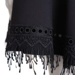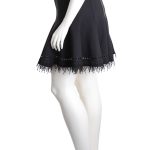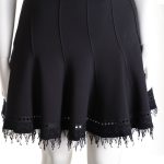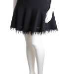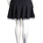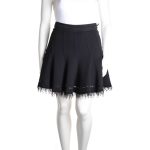 Новая дизайнерская трикотажная юбка премиального американского бренда Elie Tahari черного цвета. Расклешенный фасон со скошенными клинышками. Красиво оформленная линия низа: отделка декоративной тесьмой с перфорацией и бахромой. Широкий пояс на резинке с бархатистой-полосой вставкой. Без застежки. В составе: 70% вискоза, 26% нейлон, 4% эластан — ткань экстра качества: плотная, эластичная. Оригинал из США. Состояние — новое, с биркой магазина Elie Tahari.