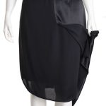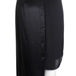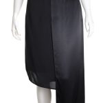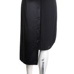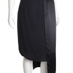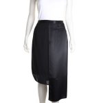 Дизайнерская юбка американского премиального бренда DKNY насыщенного черного цвета. Оригинальный фасон: одна часть — укороченная матовая, другая — удлиненная с шелковистым отливом. Застежка на пуговки по спинке. Декоративные кармашки. В составе: 100% вискоза, на подкладе из 100% п/э — ткань экстра качества: бархатистая, шелковистая, мягкая. Состояние — идеальное, как новое.