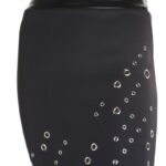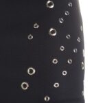 Новая юбка Love Republic черного цвета с золотыми люверсами и широким поясом «под кожу». Застежка по спинке на золотую молнию. В составе: 95% п.э, 5% эластан, без подклада. Ткань плотная, по фактуре неопреновая. Состояние — новое, без бирки (распродажа стока магазина).