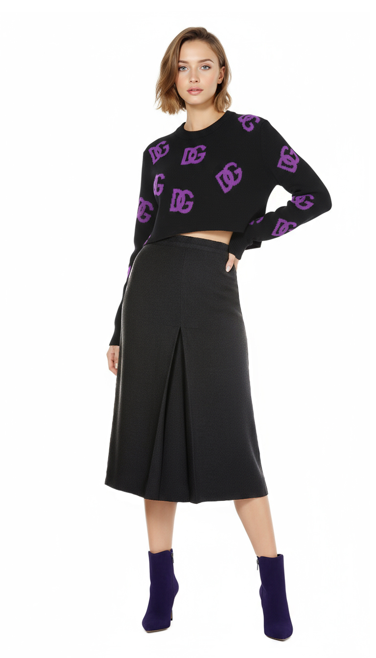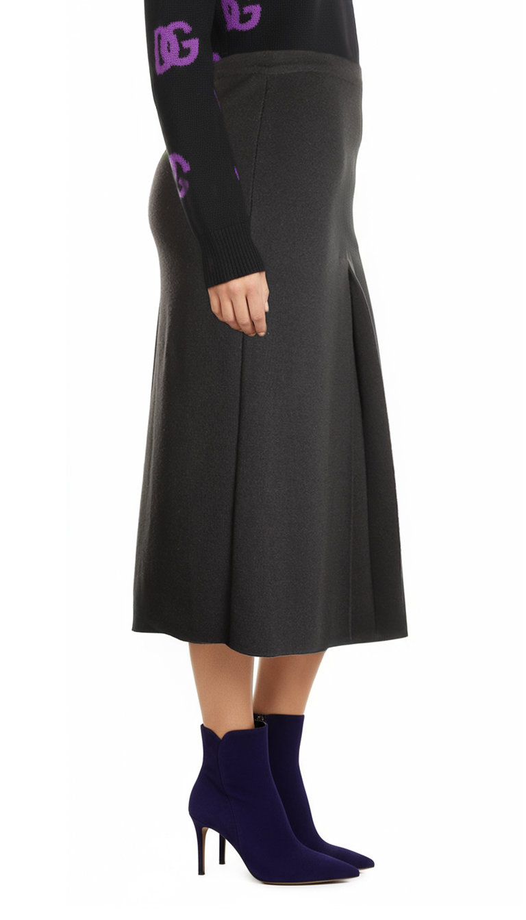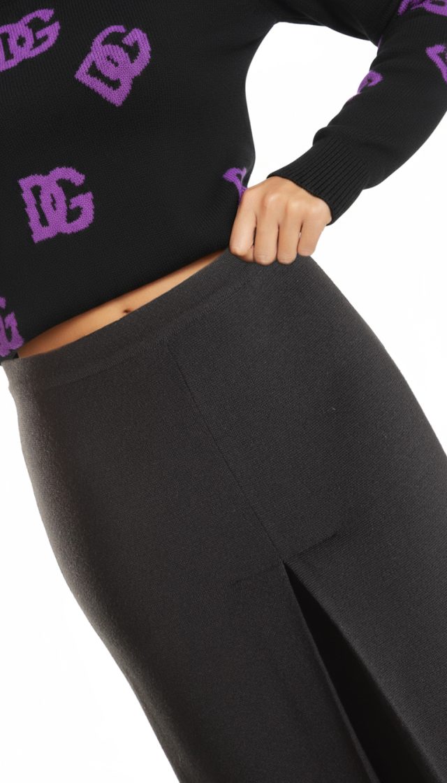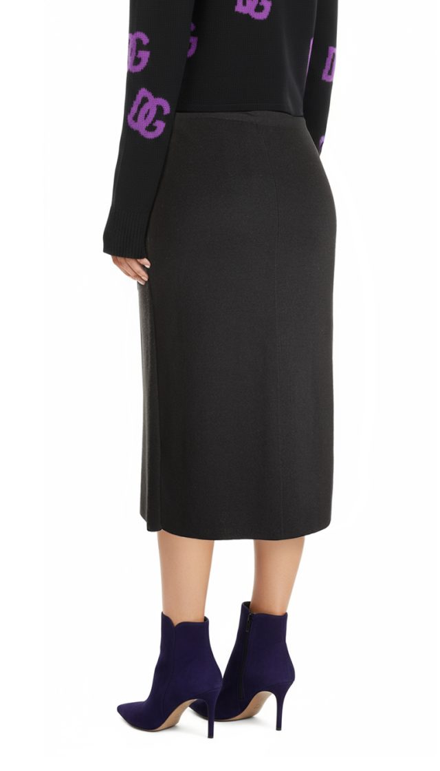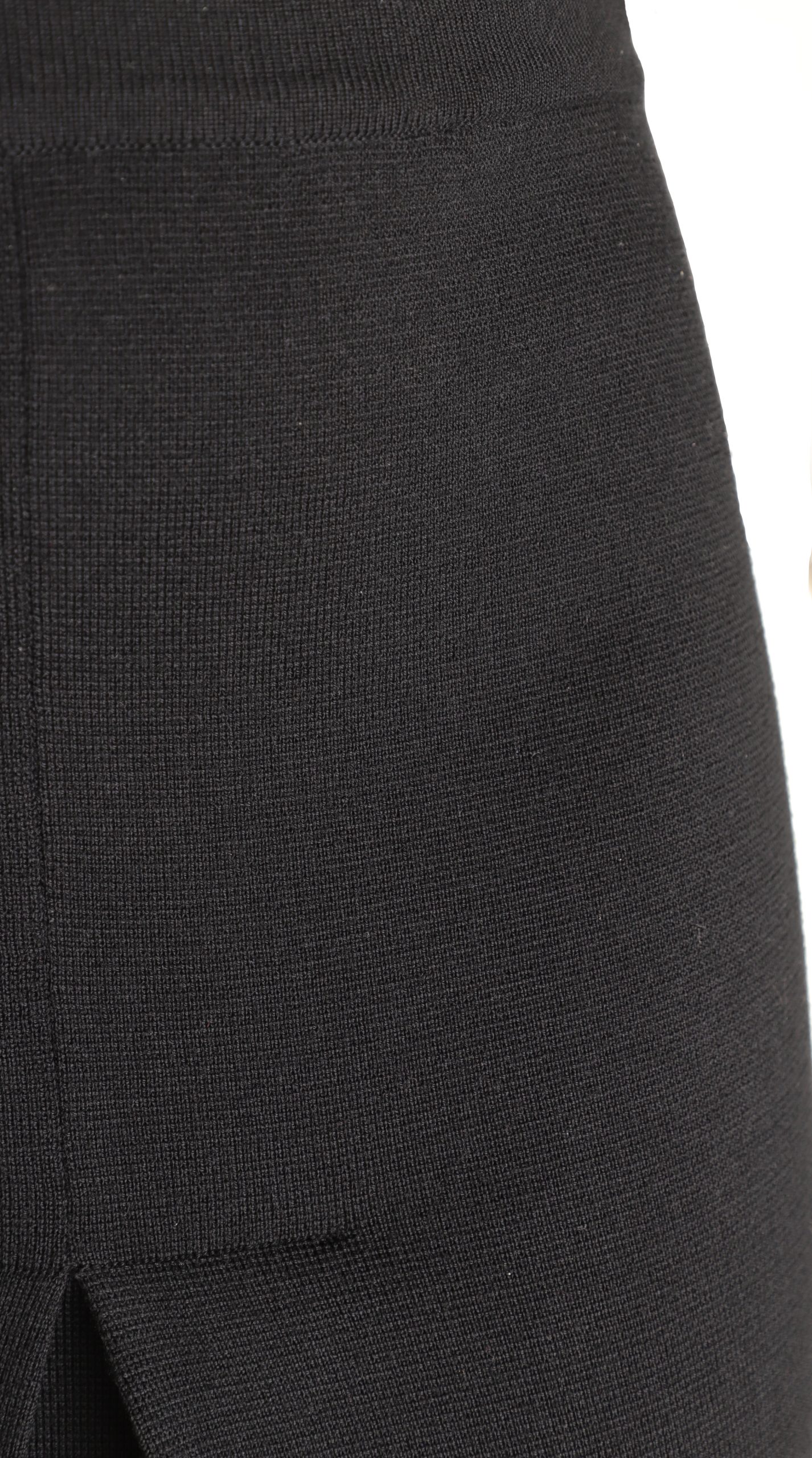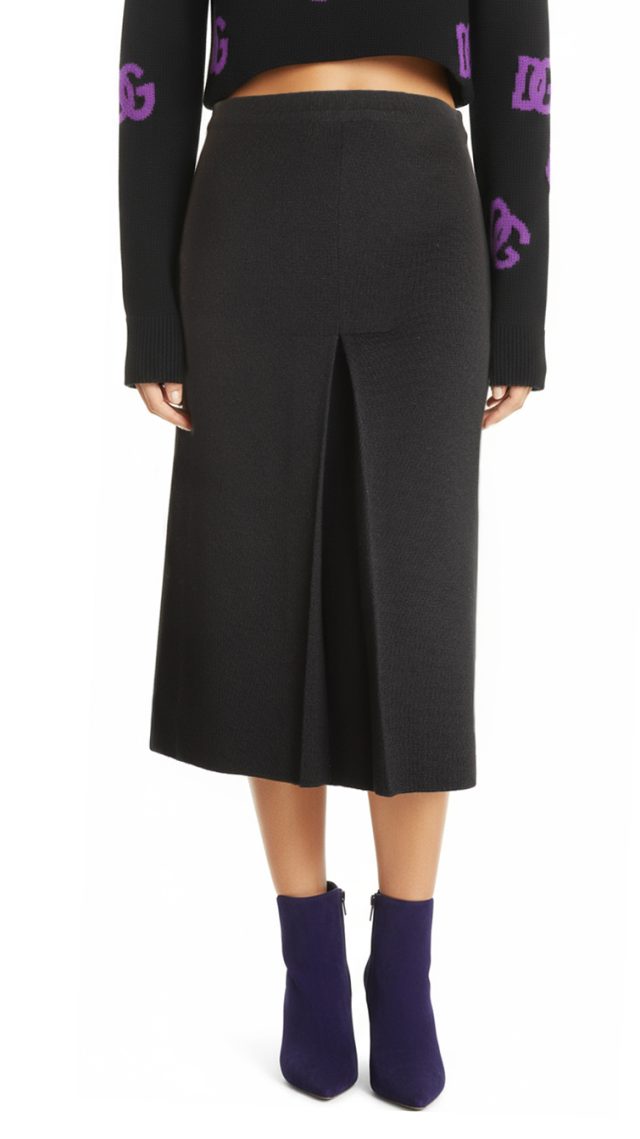 Новая трикотажная шерстяная юбка итальянского бренда Luisa Spagnoli черного цвета. Элегантный фасон с центральной складочкой, которая визуально удлиняет ножки, а длина до середины голени как нельзя кстати в холодное время года. Посадка по талии с поясом на резинке. Без застежки. В составе: 100% виргинская шерсть, без подклада — ткань экстра качества: плотная, хорошо держит форму и не мнется. Состояние — новое, с оригинальной биркой Luisa Spagnoli.