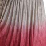 Новая юбка макси концерна Max Mara малиново-бежевого цвета с металлизированными нитями. Фасон полу-солнце с подъюбником и гофрированным шифоновым верхом. Комфортный пояс на резинке. Без застежки. В составе: 75% п.э, 25% фибра металлик, на подкладе из 100% п.э — ткань легкая, комфортная в носке. Состояние — новое, из аутлета концерна MaxMara (ярлык бренда надрезан — это политика аутлета).