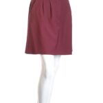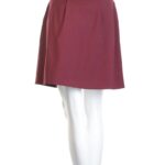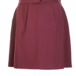 Стильная юбка премиального итальянского бренда Mauro Grifoni вишневого цвета. Широкий пояс с декоративным кармашком и большими пуговками по переду и спинке. Складочки по талии. Врезные кармашки по бокам. Застежка спереди на молнию. В составе: 80% п.э, 14% вискоза, 6% эластан, без подклада — ткань плотная, мягкая. Состояние — идеальное, как новое.